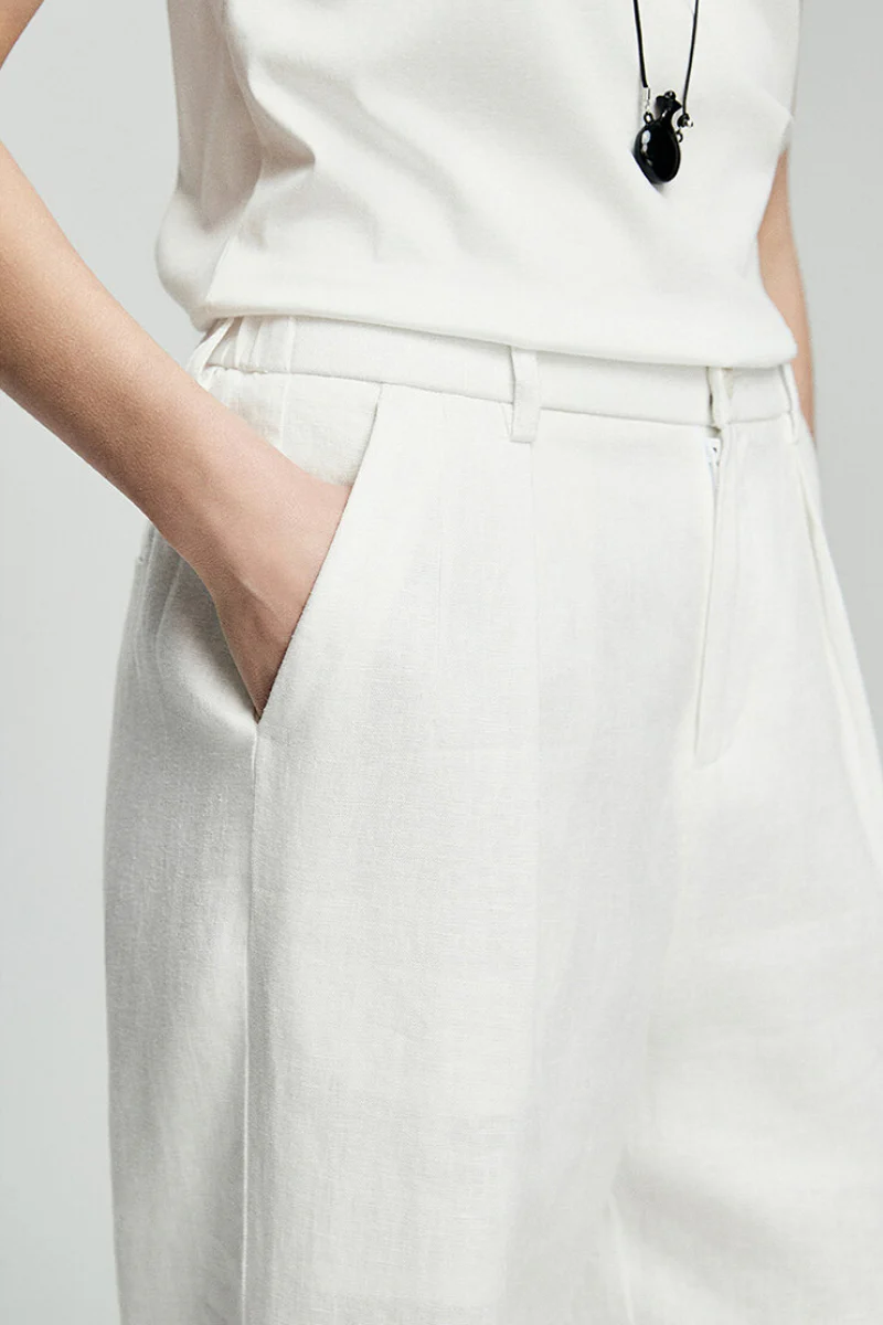 100 French Linen High-Waisted Wide-Leg Pleated Pants