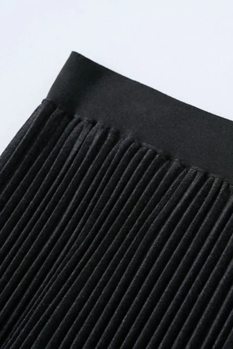 A timeless pleated black maxi skirt crafted with premium Italian wool blend.