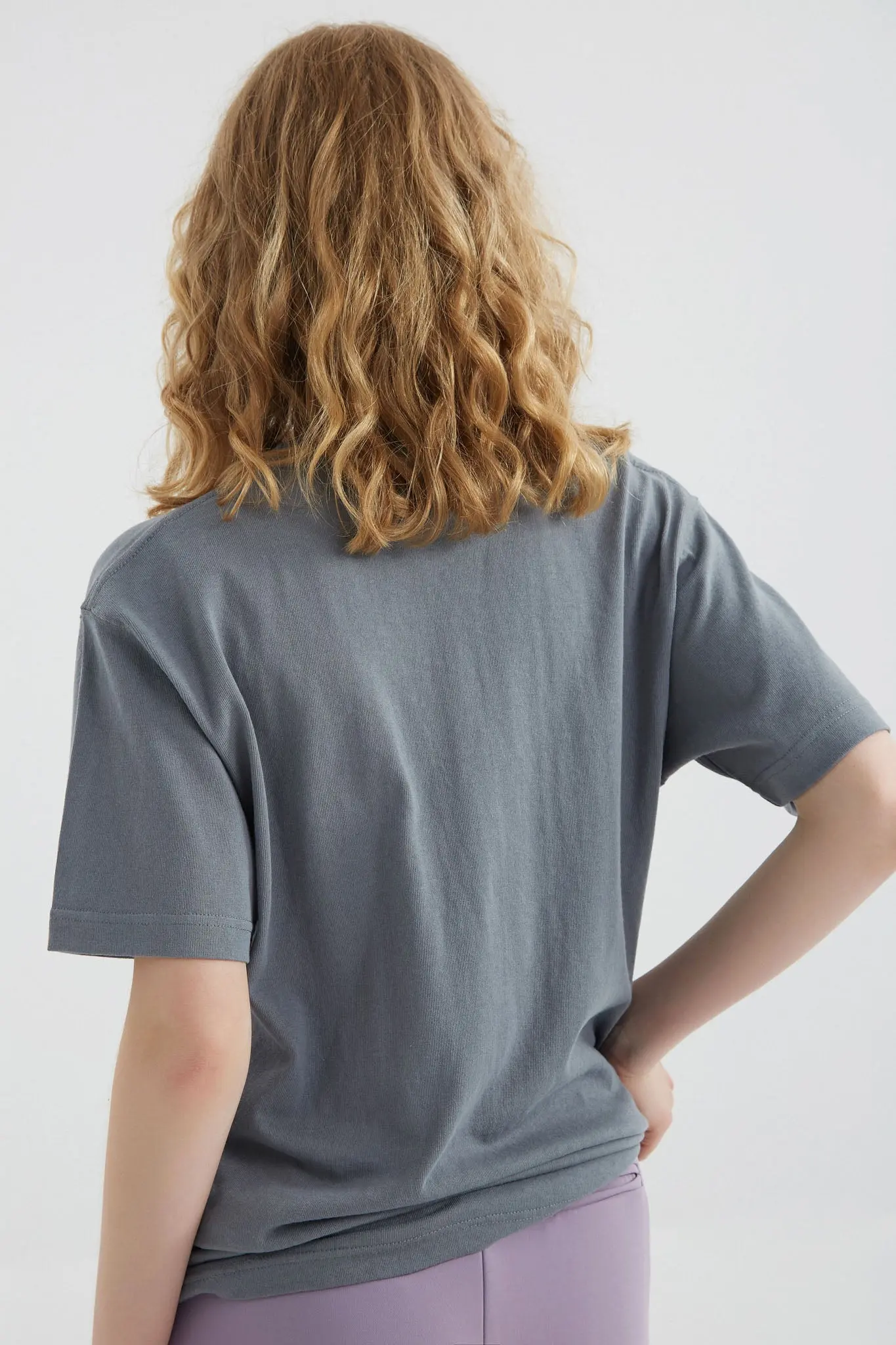 Seamless sides create a better fit, and reduces wrinkles. This crewneck t-shirt in a hazy blue is perfect for all seasons.