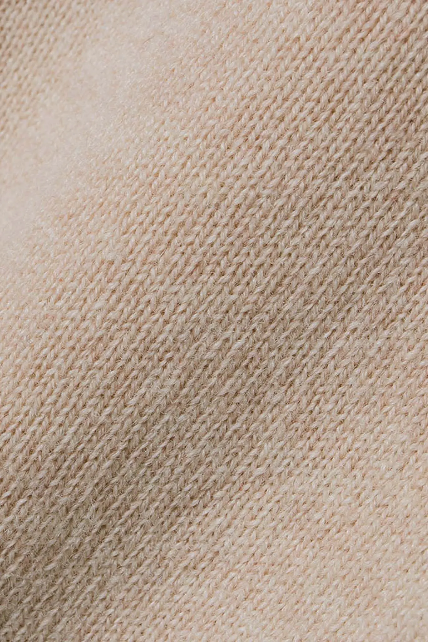 This is a crewneck cardigan with natural shell buttons and ribbed cuffs