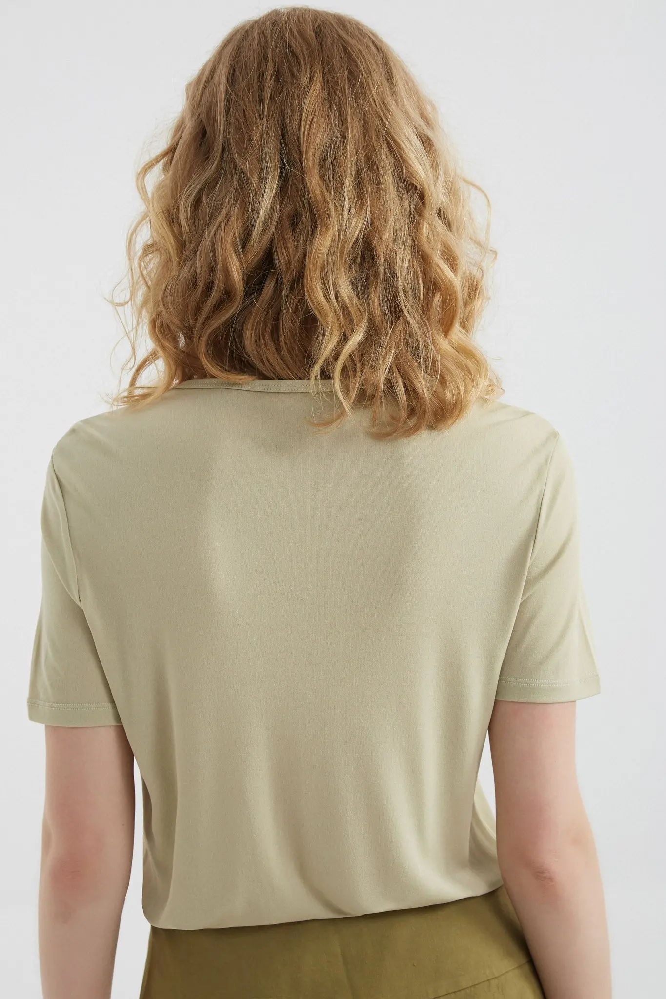 It keeps you cool and wrinkle free with its delicate craftmenship. Thin neckline is simple and chic.