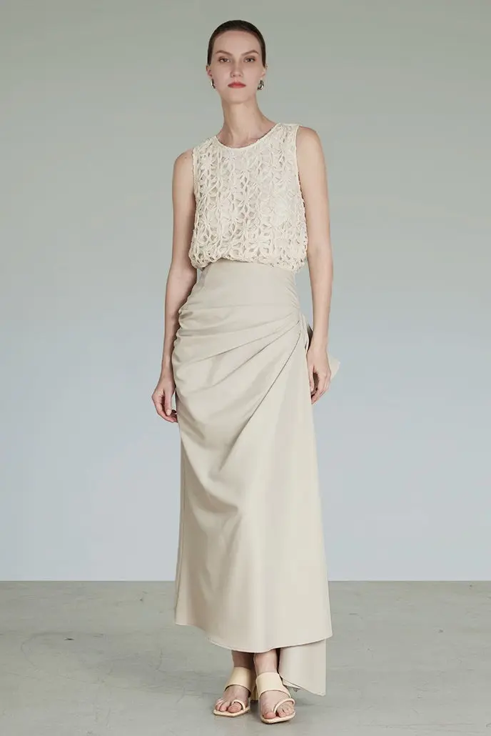 Embrace the unique blend of sophistication and playfulness with our French Floral Crochet Sleeveless Vest. Crafted with meticulous attention to detail, every floral pattern is fixed with multiple transparent threads to prevent loosening. The classic round neck design enhances your neckline, while the sleeveless style keeps you cool and comfortable. The short design optimizes body proportions, and the vest is lined with light and breathable tencel fabric. Its delicate apricot color combined with intricate crochet work offers a novel and distinctive appeal. This vest is not just a piece of clothing, it's a labor of love and craftsmanship.