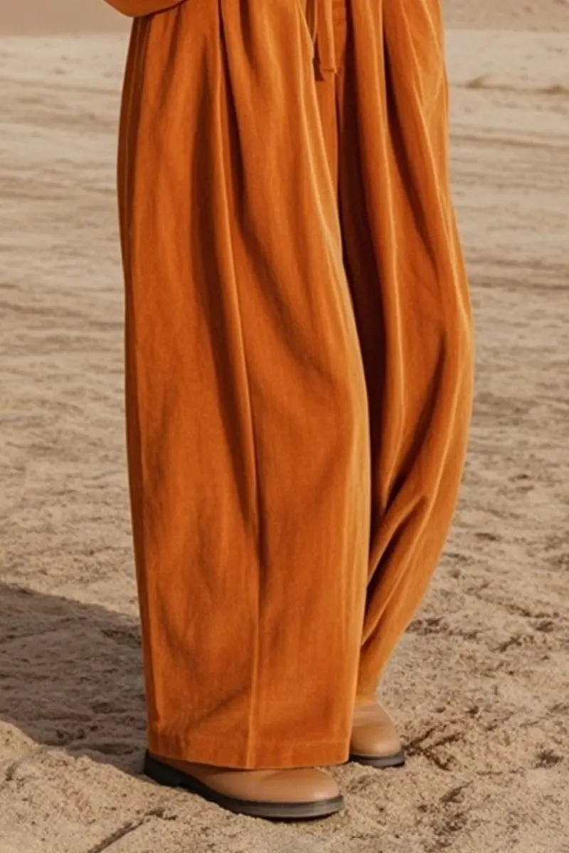 Orange Brown Drawstring Wide Leg Corduroy Pants