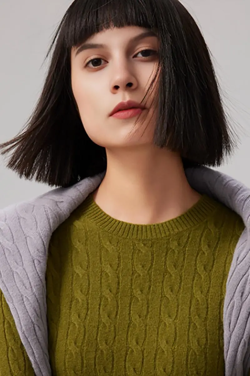 Featuring a raised cable knit texture, this sweater exudes a minimalist vintage charm. The slightly loose fit paired with a classic crewneck adds a touch of British elegance, perfect for layering or wearing on its own. Available in pink, white, and grey.